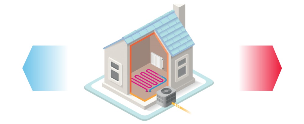 Η αντλία θερμότητας, κατά την περίοδο του χειμώνα, αφαιρεί θερμότητα από το περιβάλλον και τη διοχετεύει στο εσωτερικό της οικίας, ενώ, κατά την περίοδο του καλοκαιριού, αφαιρεί θερμότητα από το εσωτερικό της οικίας και την αποβάλλει στο περιβάλλον. Η λειτουργία της αντλίας θερμότητας είναι παρόμοια με αυτή που εφαρμόζεται στα ψυγεία, τα κλιματιστικά, κ.ά. Μπορεί να εγκατασταθεί με τα υφιστάμενα σώματα, με fan coils καθώς και με ενδοδαπέδιο σύστημα θέρμανσης.