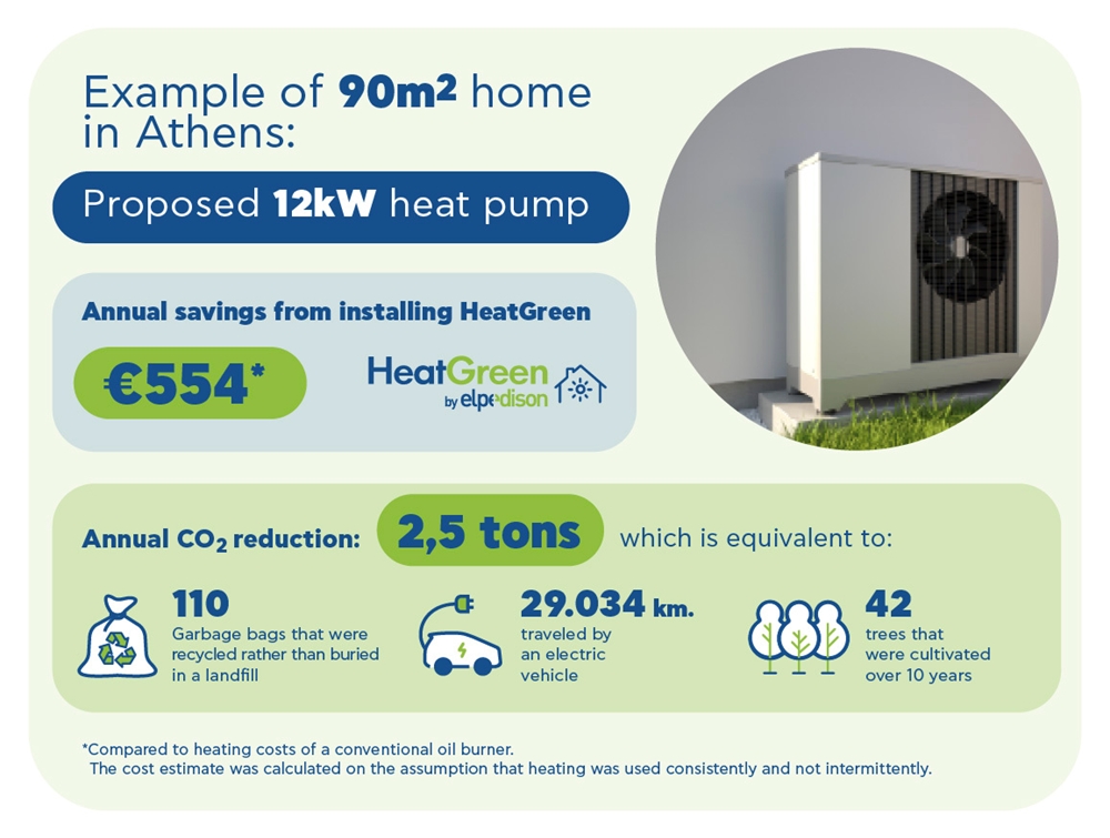 Με την αντλία θερμότητας εξοικονομείτε ένα σημαντικό ποσό ετησίως, ανάλογα με τα χαρακτηριστικά του σπιτιού σας, και παράλληλα συμβάλλετε στην προστασία του περιβάλλοντος καθώς μειώνετε το ενεργειακό σας αποτύπωμα.