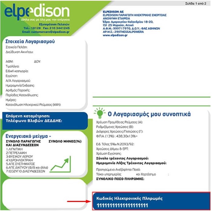 • Δυνατότητα λήψης λογαριασμού μέσω e-bill